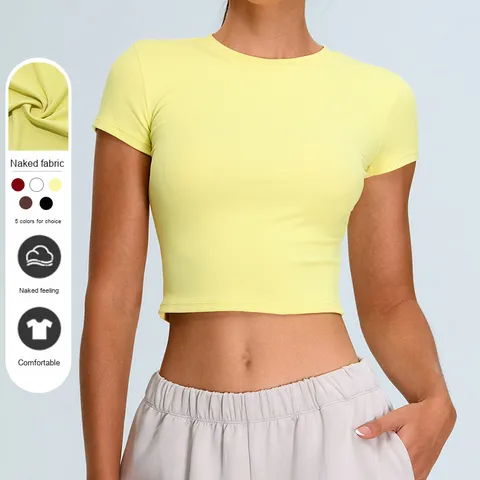 Großhandel Custom Frauen Yoga Top Schnellt rocknende Casual Sport T-Shirt Atmungsaktive Solid Print Fitness Running Top Kurzarm